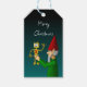 L'elfe et le robot sur une étiquette cadeau