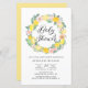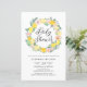 Invite family and friends to your event with this bright botanical baby shower invitation. It features watercolor wreath of pastel lemons and pink flowers. Personalize by adding your event details. This lemon invitation is perfect for summer and spring baby showers.