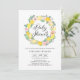 Hello, lemons! Invite guests to your event with this citrus botanical baby shower invitation. It features watercolor wreath of pastel lemons and pink flowers. Personalize by adding your event details. This lemon invitation is perfect for summer and spring baby showers.