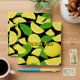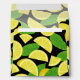 Lemon slices and leaves. Seamless pattern. Custom background colour. Custom text.