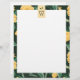 Our lemon chiffon letterhead stationery design captures sophistication & elegance with our original hand-painted watercolor lemon tree with yellow blossoms, flowers and leafy foliage. Crisp citrus yellow shades are paired with deep jade greens to create this fresh wedding design. All of the florals and artwork are meticulously hand-painted by us, to create our unique memorable wedding designs. Personalize the background colour and monogram initials to suit your design preferences.