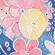 A seamless pattern featuring pastel-coloured lemon slices and cute flowers on a light blue background. The design combines soft, refreshing hues with charming floral elements, creating a whimsical and cheerful visual effect.