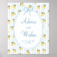 Encourage heartfelt notes for the bride-to-be with this elegant “Advice and Wishes” sign. Featuring cheerful lemons, soft blue stripes, and a pretty bow detail, it perfectly complements your Mediterranean bridal shower or engagement brunch.