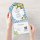 Lemon Blue Mediterranean Monogram Qr Code Wedding All In One Invitation