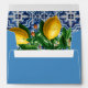 Lemon and Blue and White tile wedding monogram modern envelope.