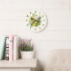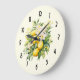 A clock with a lovely illustration of a bouquet of lemons surrounded by white blossoms leaves and sprigs.