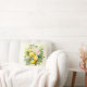 A pillow with a lovely illustration of a bouquet of lemons surrounded by white blossoms leaves and sprigs.
