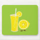 A smiling halved lemon character, standing next to a tall glass of lemonade