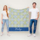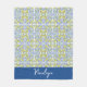 Lemon Citrus Blue Mediterranean Tile Pattern Fleece Blanket