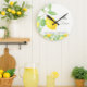 Customize this country-style lemon citrus wall clock with your preferred name and message. This cheerful yellow and white kitchen clock would make a thoughtful birthday or housewarming gift for her. It features a bright, inviting design perfect for adding a touch of warmth and personality to any kitchen or home.