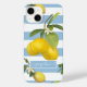 Lemon Citrus Floral Greenery Blue White Striped Case-Mate iPhone Case
