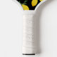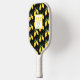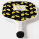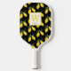 Modern lemon citrus pattern pickleball paddle with monogram and name. Cute, fun design on black background. Easy to change the text.