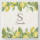 Lemon citrus monogram name stone coaster. Modern lemon summer design for the home. Easy to change the monogram and name.