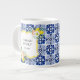 Start your day with Italian charm! This mug features a lemon citrus design with a navy blue Mediterranean tile pattern, floral botanical accents, and elegant white and blue details—Suitable for Italy lovers and Italian wedding gifts.