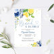 Celebrate in style with this elegant lemon and floral bridal shower invitation. Featuring watercolor lemons, citrus slices, and delicate blue and yellow flowers accented with gold details, this design brings a fresh and cheerful touch to your special day. Perfect for brunch and bubbly gatherings, it combines modern elegance with a playful citrus theme. Customize with your event details to create a memorable keepsake for guests.