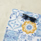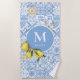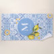Lemon fruit monogram, blue tile beach towel