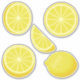 Lemon icon set stickers. A whole lemon and assorted slices.