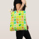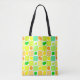 A fun tote with a colourful citrus fruit pattern of lemons, limes, oranges and citrus slices on squares of white, orange, teal and yellow.