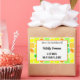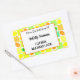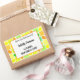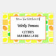 An editable baking or canning sticker with a colourful citrus fruit pattern of lemons, limes, oranges and citrus slices on squares of white, orange, teal and yellow, for marmalade, jellies or other recipes.
