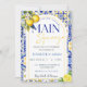 Embark on a journey to the idyllic Mediterranean with this enchanting invitation, where the vibrant hues of azure blue tiles mingle with the refreshing zest of lemons, creating an atmosphere of timeless elegance and joyous celebration.