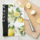 Lemon Pattern, Lemon Flowers, Leaves, Your Name Kitchen Towel