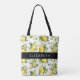Lemon Pattern, Lemon Flowers, Leaves, Your Name Tote Bag