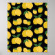 Lemon Pattern Retro Fruit Yellow On Black Poster