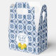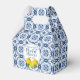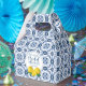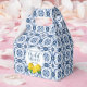 A pretty lemon bridal shower favour box decorated with lemons and Italian blue tile. Perfect for your Italian blue tile lemon bridal shower guests. Designed for you by Blackberry Boulevard.