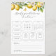 Juicy Yellow Lemon Predictions & Advice Baby Shower Game card. With this bright watercolor design, this baby shower collection is the perfect way to celebrate the birth of your new baby.
