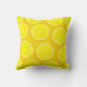 Graphic art pillow featuring slices of bright yellow lemons. Fruit print cushion to bring a touch of the zest to a living room or family room or kitchen.