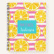 Our Lemon Slice Pink Stripe Spiral Notebook is perfect for back to school! This design features fun pink and white stripe background print with bright yellow lemon slice design on top. Customize the fonts and colours and text on the front, and the back cover colour for a truly unique custom notebook for back to school.
