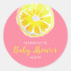 Lemon Slice Watercolor Pink Baby Shower Classic Round Sticker