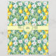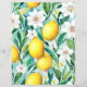 A wrap for handmade soap featuring lemons, white flowers, and green leaves.