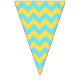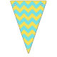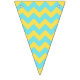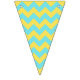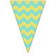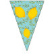 This pretty bunting flag is perfect for garden parties, ladies luncheons, showers and any other party with elegant but simple charm. Two patterns are displayed; one with lemons are green leaves with a turquoise background and the other with a turquoise and yellow chevron pattern.
