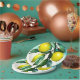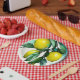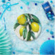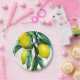 These colourful paper plates feature beautiful yellow watercolor lemons on a lemon tree branch with blue green leaves.