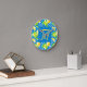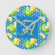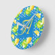 Lemon Tree Ocean Blue MONOGRAM Newlyweds Wedding Round Clock
