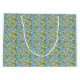 Lemon Watercolor Blue Mediterranean Tile Pattern Large Gift Bag