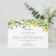 Summery, simple and elegant, this lemon themed wedding details enclosure card features brightly coloured branches of lemon trees, white flowers with summer butterflies around.