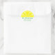 A sticker featuring an illustration of a lemon wedge on top half portion. Personalize the green text on bottom half with your name and address. Look for matching items in the "food" category of Jill's Paperie.
