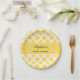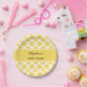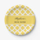 Lemon Yellow and White Quatrefoil Pattern Bridal Paper Plate