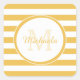 Lemon Yellow Candy Stripes Girly Name and Monogram Square Sticker