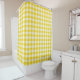 Gingham pattern shower curtain in Lemon Yellow. Add a modern design splash to your bathroom with this machine washable polyester bath / shower curtain. 71" x 71" (fits most shower / bath units). Unique designs in contemporary colours. Vivid full colour printing.