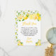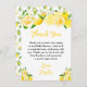 This beautiful and elegant thank you card features watercolor citrus lemons and foliage. The text combines handwritten script and serif fonts for a stylish and modern look. This is perfect for a spring or summer rustic bridal shower.