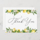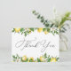 Thank You card features a border of watercolor lemons and greenery. Personalize with your information or click "Click to customize further" to edit font styles, size and colours. Can also be personalized on the back with your own typed message or delete this space to handwrite your own thank you.