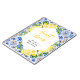 This beautiful and elegant baby shower guest book features watercolor citrus lemons and foliage on a Mediterranean tile background. The text combines handwritten script and serif fonts for a stylish and modern look. This is perfect for a spring or summer rustic baby shower.