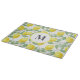 This tempered glass cutting board is shown in s cute lemons art print.
