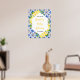 This fun and whimsical welcome sign features watercolor citrus lemons and foliage on a Mediterranean tile background. The text combines handwritten script and serif fonts for a stylish and modern look. This is perfect for a summer rustic baby shower.