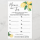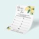 Lemons Citrus Name that Tea Bridal Shower Game. Change text to the design. For additional changes (change number of teas and any other text, font colour, font style), click on personalize, scroll down and click on the link "Edit using Design Tool". ** Please see the full collection for matching designs available** HOW TO PLAY: Have ten different type of tea, guests will write down their guess of each tea flavour by smelling and looking only, the person with the most correct answers wins!
