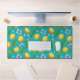 Lemons on blue desk mat