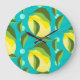 Lemons Polka Dot: Blue Background. Large Clock